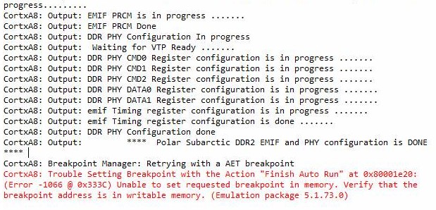 例程中设置.ccxml为AM3359, GEL 选择的是官网的AM335x_beaglebone.gel,