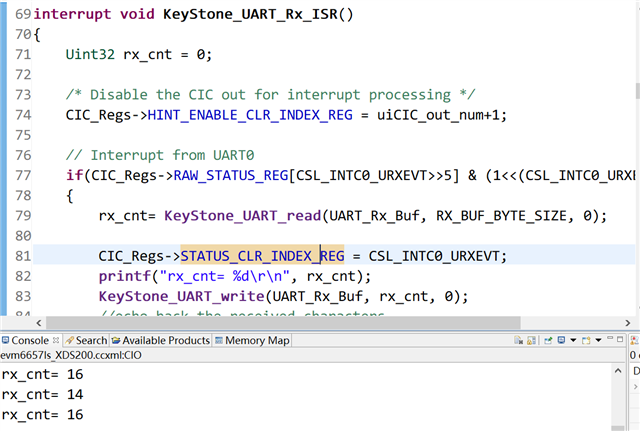 rx_cnt= KeyStone_UART_read(UART_Rx_Buf, RX_BUF_BYTE_SIZE, 0);