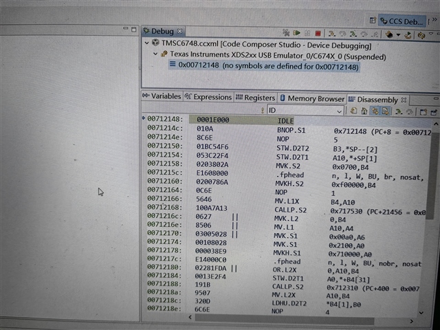 DSPC6748连上仿真器后,load不上程序,一直跳转到如下界面,请问是什么原因造成的呢?