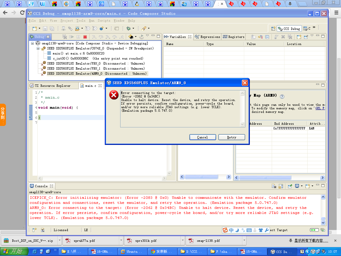 omapl138 仿真器连不上ARM核
