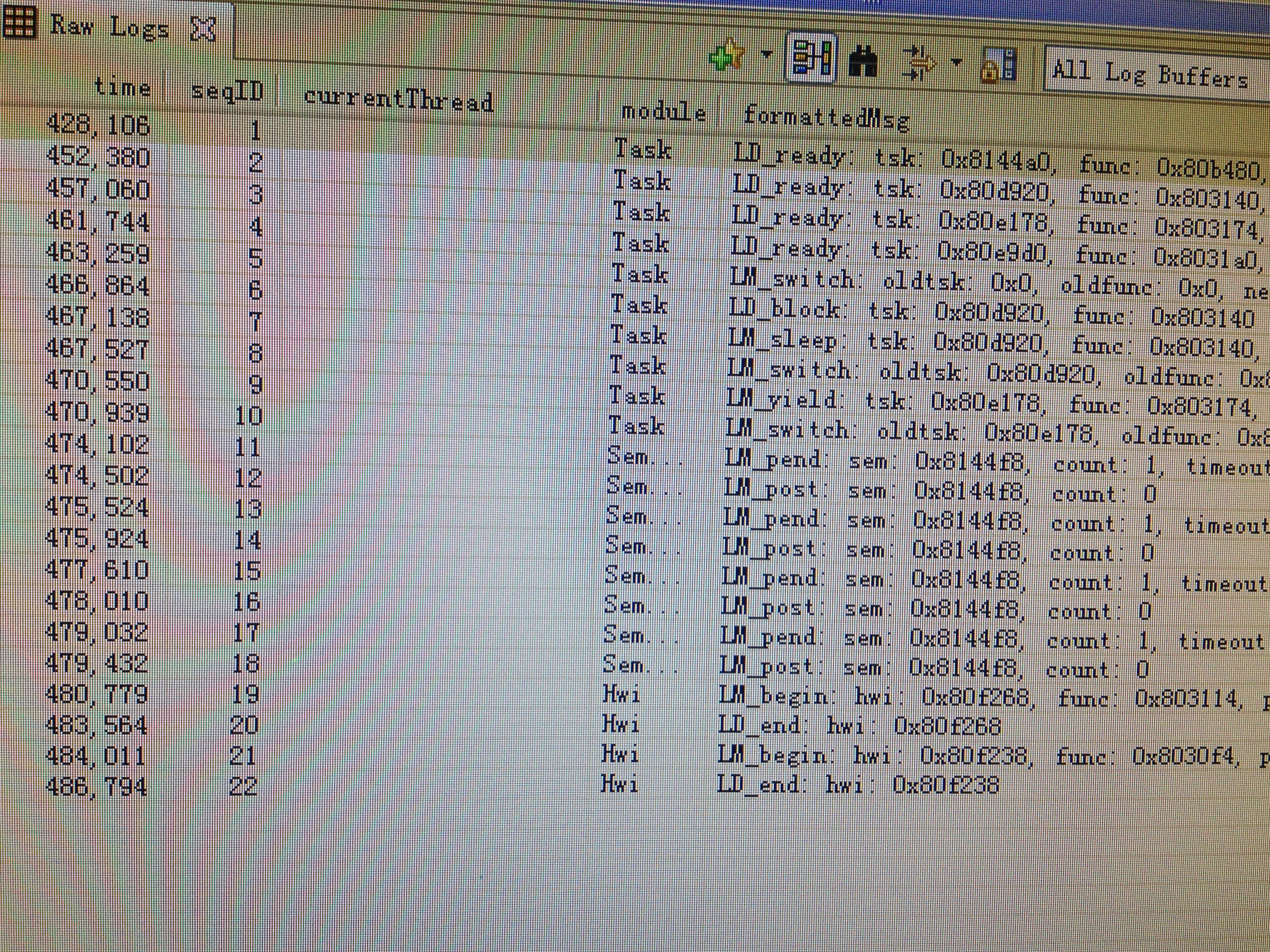 目前在使用C6678芯片进行SYS/BIOS编程,在CCS 5.2软件中想使用SYS/BIOS系统的log模块进行log event的记录。现在在调试过程中发现两个问题: