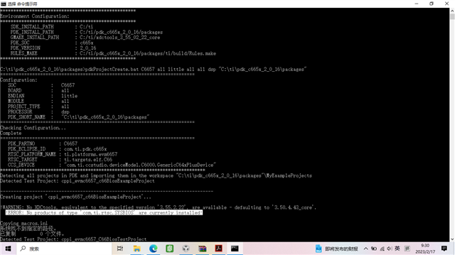 已经安装了C:\ti\ccs930及ti-processor-sdk-rtos-c665x-evm-06.03.00.106-Windows-x86-Install