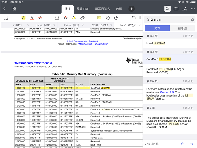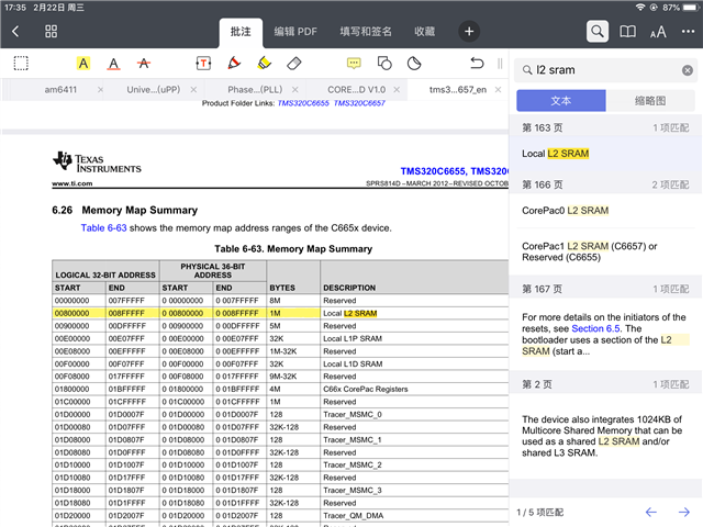 本地和内核都有L2 SRAM,地址相差0x1000 0000