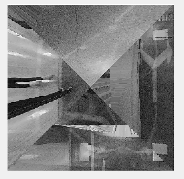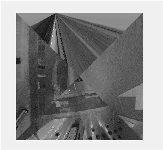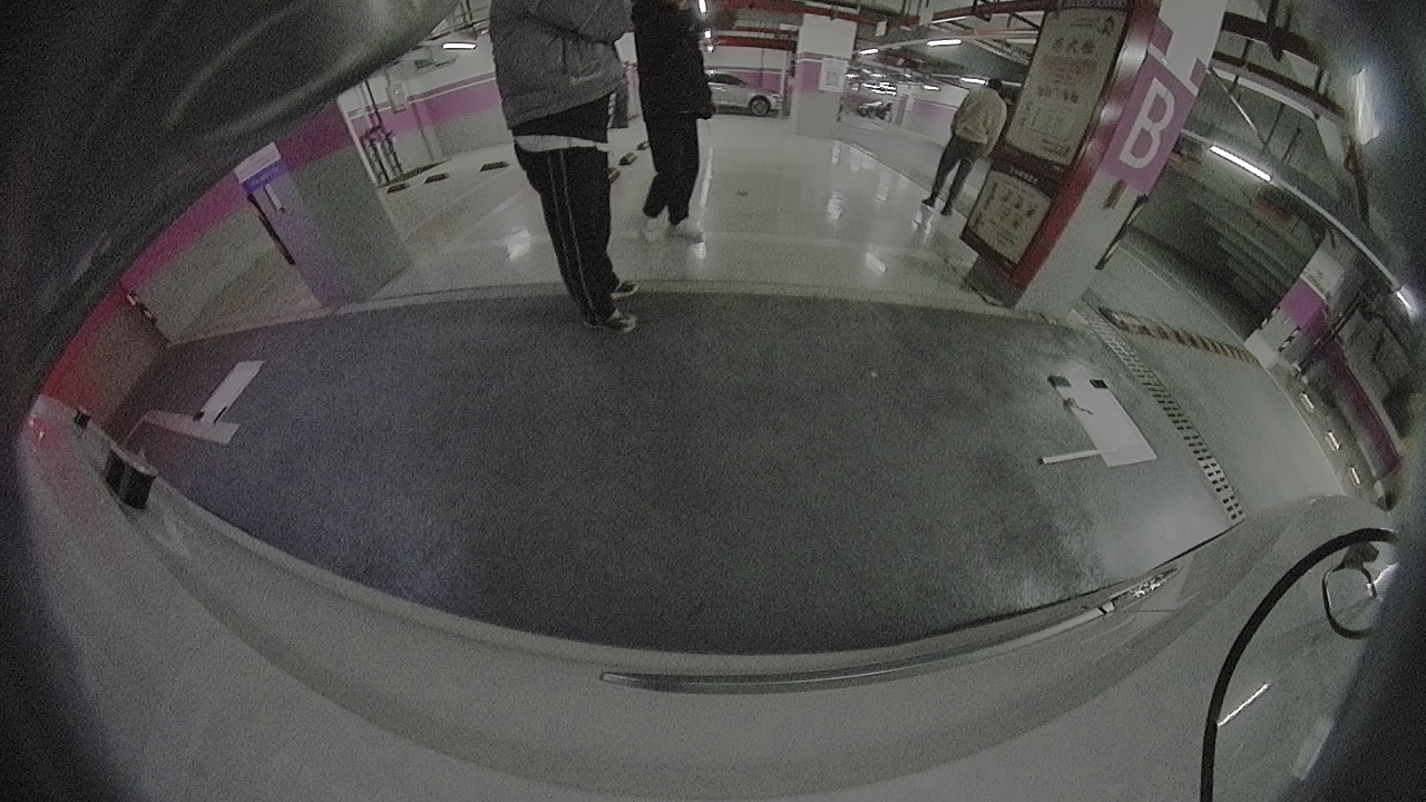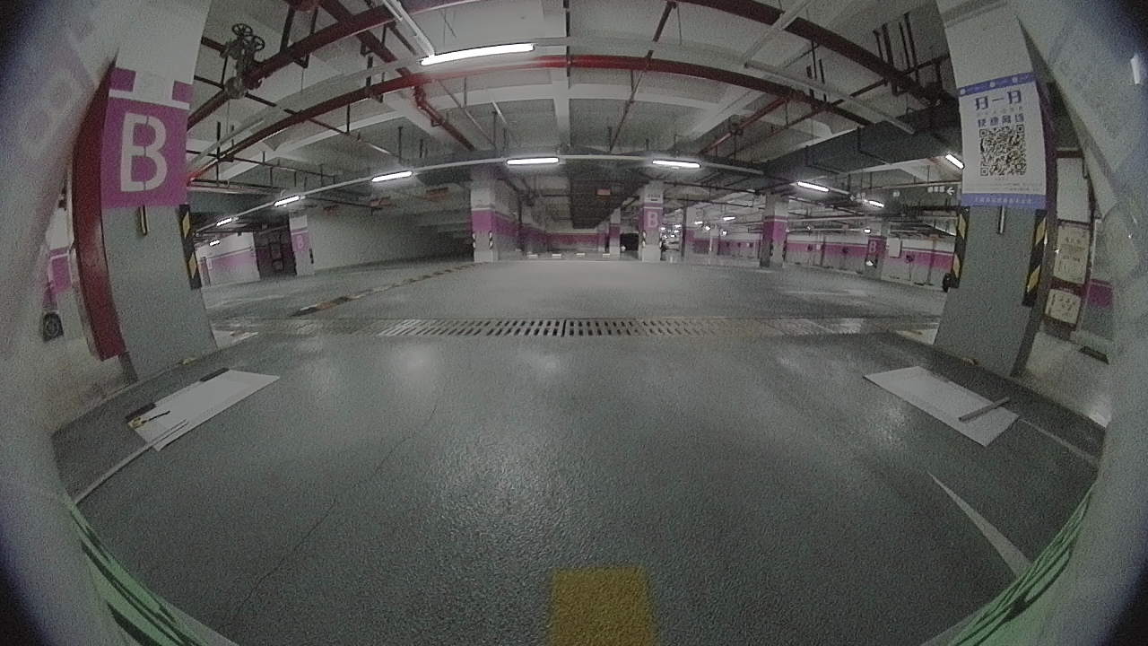 我这边四个环视摄像头分别放置在车辆的前后左右,按照官方文档第一步,cam1、cam2、cam3、cam4分别是 后、前、右、左 摄像头得到的图像;第二步使用图像中心为失真点;第三步,焦距设置440(这个是根据图像去畸变效果试出来的)得到lut表及LENS.BIN文件,第四步的参数,我们放大八倍在车辆四个角落,按顺序点击八个角点,最后test的时候,拼接结果很差,如下图:
