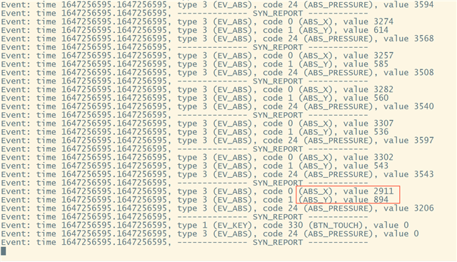 如下图,在使用电阻触摸时,经常出现触点偏移到别的位置的情况,通过evtest发现,每次出现偏移,最后一个点上报的数据都出现很大的偏差,请问这个怎么解决