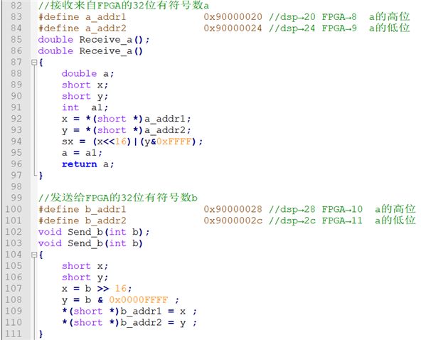 下面是32位数据交互时的DSP端代码。使用的是TMS320C6726,所以一次只能传16位。