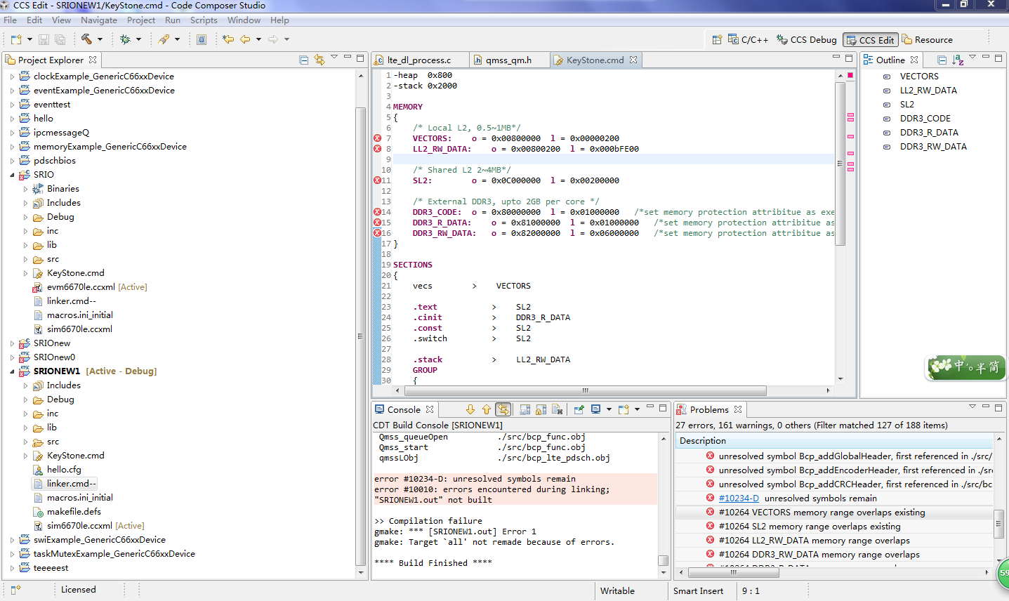还有你的工程还提示unresolved symbols,是由于为保护qmss、cppi相关的lib,可以在工程属性include search path中增加pdk中预编译好的qmss、cppi lib。