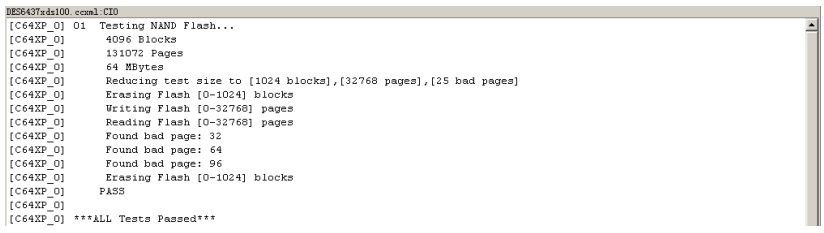 将dm6437evm板写flash代码烧到dsp中运行,运行结果如下。在写flash以后设置断点,可是查看内存觉发现flash对应的地址数据没有变化。