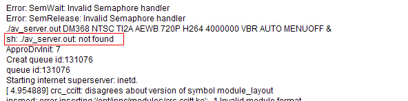 ./av_server.out DM368 NTSC TI2A AEWB 720P H264 4000000 VBR AUTO MENUOFF &