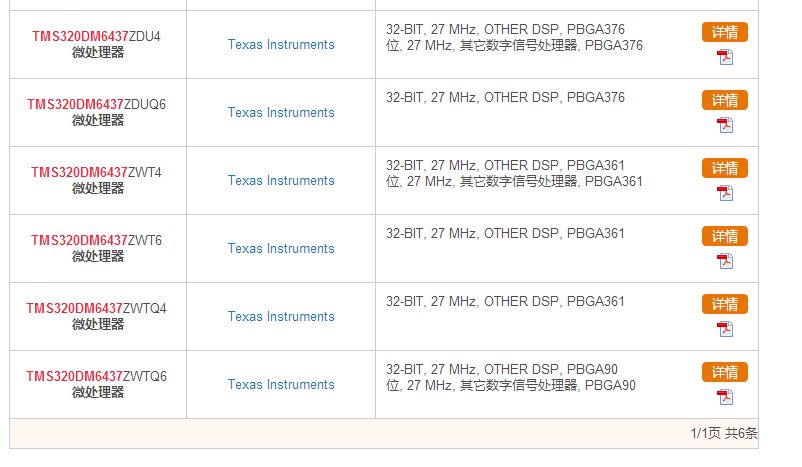 附图中,是datashe5网站搜索,tms320dm6437的结果,