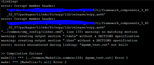 您好,我想在CCS上运行ti自带的dgemm例子,查询用户手册后,按照用户手册的编译方式进行操作: