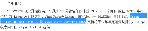 说该评估板配套的MCSDK里会有Green Hills® INTEGRITY® RTOS 与 Wind River VxWorks® RTOS这两个操作系统。