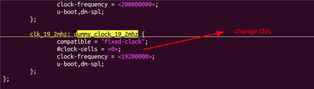 • 如果您使用不同的 PLL 参考时钟,您还需要在其 DTSI 中修改相同的时钟: