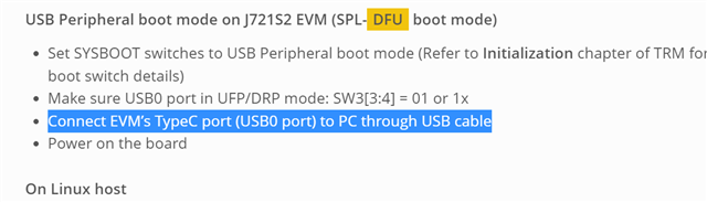 一种是你们的EVM,J721S2XSOMXEVM,这个板子配置为DFU模式启动后,usb没有任何反应,