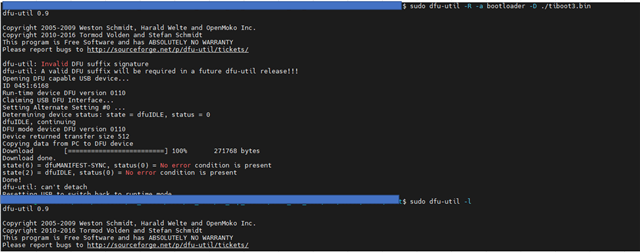 sudo dfu-util -R -a bootloader -D tiboot3.bin