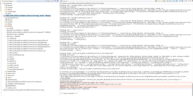 我现在要在am6234 a53核Linux 端使用 mcu 核,我使用的是8.6 版本的Linux SDK ,我在SDK文档3.7 章节看到用户空间开启mcu 是将 am62-mcu-m4f0_0-fw 软链接到 ipc_echo_baremetal_test_mcu2_0_release_strip.xer5f 然后可以在用户空间通过sys 接口控制mcu核的停止和运行,我现在想自己编一个mcu的程序将sdk 文件系统自带的mcu 程序替换掉,我在windows 上安装了CCS12 和 8.6版本的am62x mcu SDK , 然后倒入mcu sdk 中的helloworld examples CCS工程,编译完成后没有发现.xer5f 的文件,这个.xer5f的文件如何生成。同时我在mcu sdk 文档中只看到了导入SDK 中examples CCS工程,如果我自己创建一个mcu ccs工程,有没有详细的文档介绍。