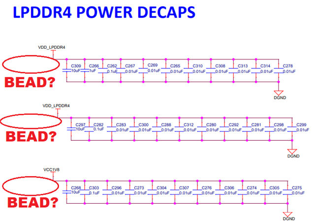 (2)LPDDR4VDDQ & VDD2 power 現在不需要bead, 直接接到電源output, 不用分開嗎?