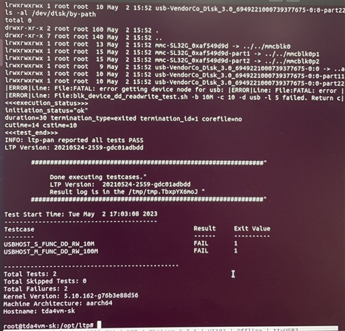 执行命令:./runltp -P j721e-evm -f ddt/usbhost_dd_rw