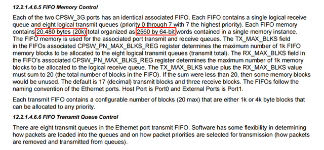 AM6442: cpsw0 以太网端口FIFO结构问题。