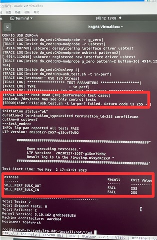 执行命令:./runltp -P j721e-evm -f ddt/usb_perf_raw