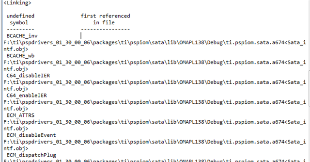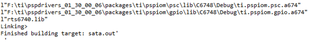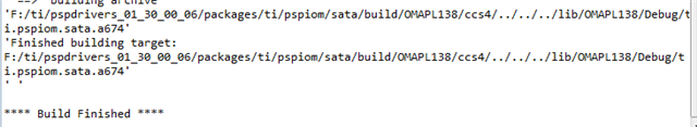 库文件编译的信息:'Finished building target: F:/ti/pspdrivers_01_30_00_06/packages/ti/pspiom/sata/build/OMAPL138/ccs4/../../../lib/OMAPL138/Debug/ti.pspiom.sata.a674'
