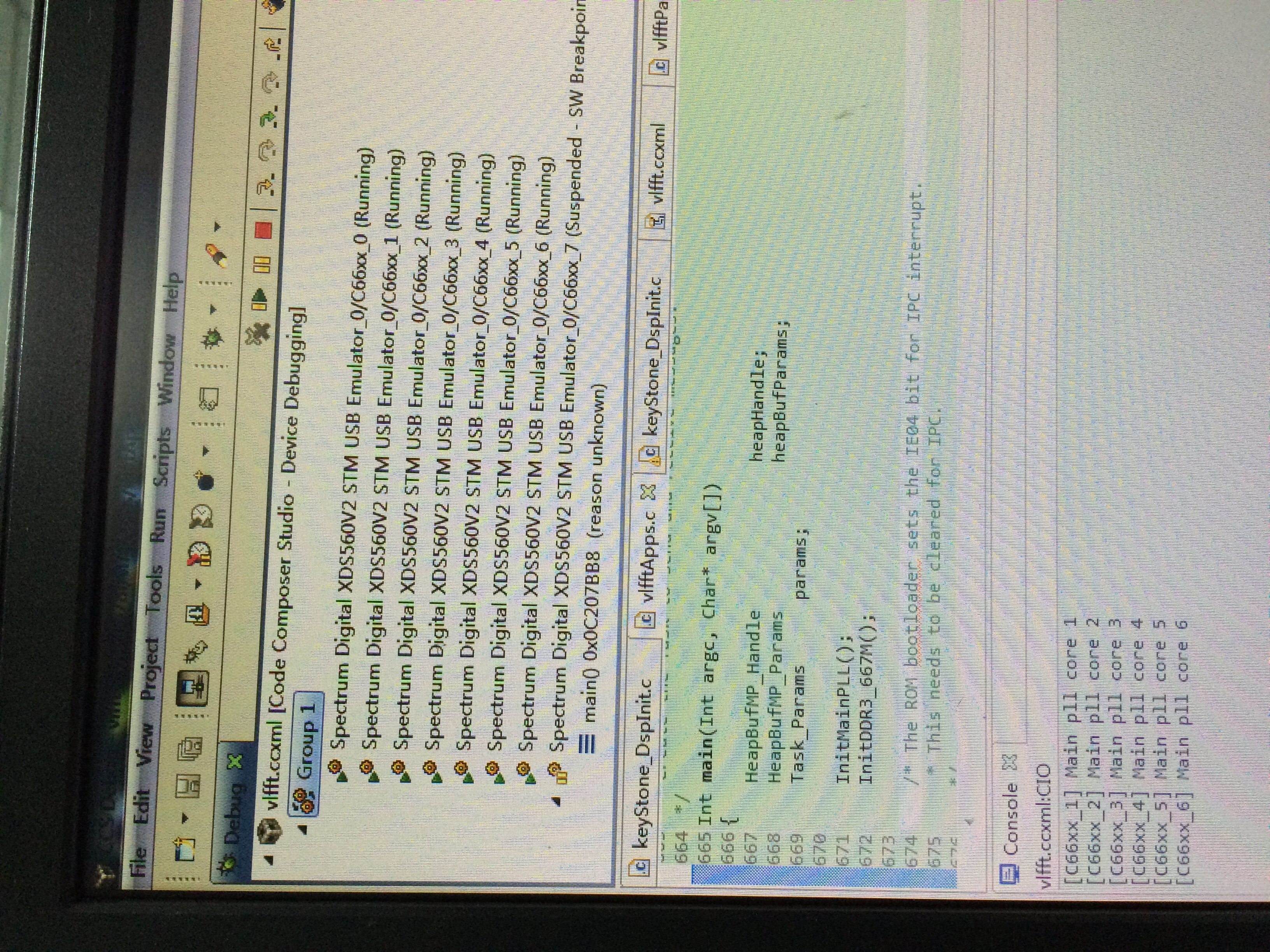 专家好,按照指导下载了相关的edma3版本,编译可以了,但是无法运行,我在main入口处添加了初始化核时钟和ddr初始化,初始化里面都判断是否0核,是才执行初始化代码。八个核加载同样的代码,加载后在跳转到main前就打印了我初始化里面的语句,也没有core0的打印,也没有core7的,点击运行后有core7打印。然后一直运行状态,无法跳转到main。请问怎么解决?