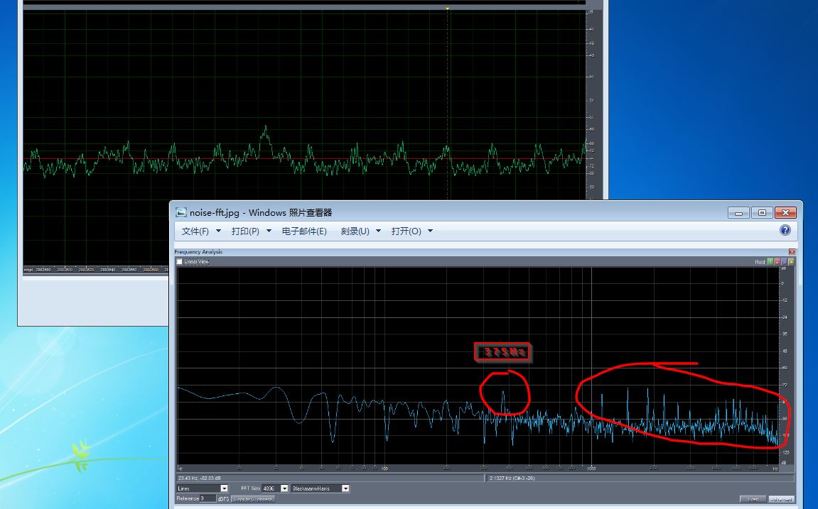 将DMA缓存输出到DA的数值都设为0,但是输出的波形如下,有明显的375Hz的噪声和高频谐波噪声。