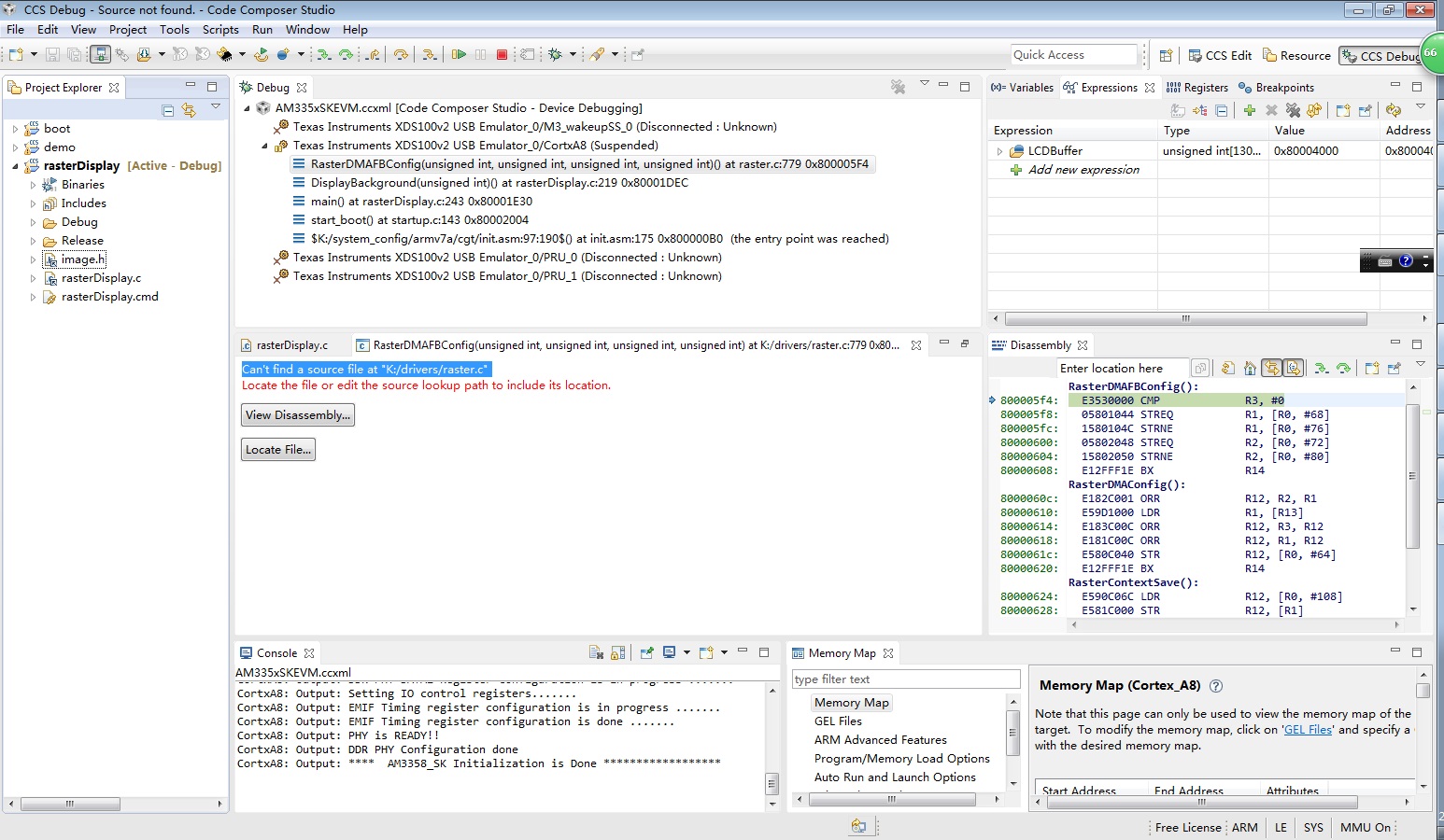 解决办法很简单,点下那个locate file,然后按照提示,是K:/drivers目录下面的文件你就把K:/这个根目录换成你安装的Starterware的目录就可以了。