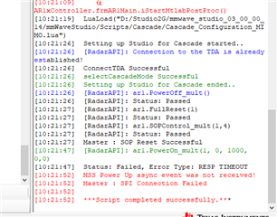 错误提示是host和AWR2243的SPI通信链接失败。请问MMWCAS-RF-EVM上的灯有正确亮起么?使用的12V电源是否为2.5A以上?