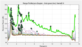 我在使用级联板卡RF-EVM+DSP-EVM以及与之配套的mmstudio和MATLAB example过程中突然出现静止目标出现扩展多普勒的问题: