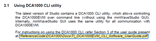 mmwave_studio_userguide中3.1 Using DCA1000 CLI utility 中的ReferenceCode\DCA1000\Docs\TI_DCA1000EVM_CLI_Software_UserGuide.pdf没找到,请问是在哪里呢