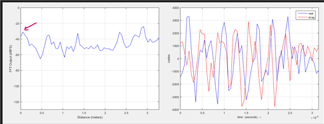 下图是我们团队在使用AWR2243 开发板进行测距实验时,使用mmwave studio自带的matlab后处理模块得到的range profile图像。我们可以非常肯定实验过程中没有在箭头所指的距离(约0.06m)处放置任何目标,然而测量结却显示这里存在目标,并且其峰值高于在0.6m左右处的真实目标。请问这是什么原因造成的,是否有改善的方法?