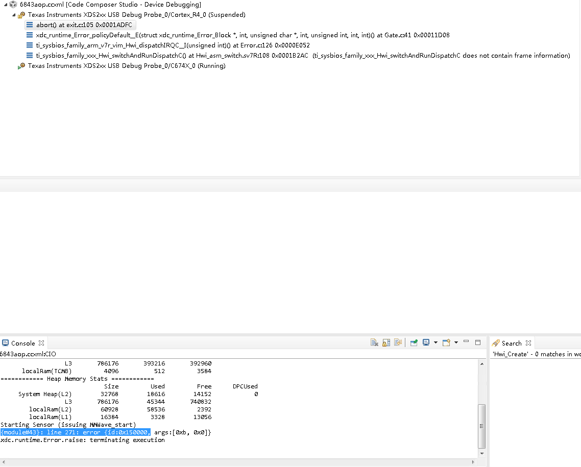 您好,我按照MCAL example中的调用方式,在out of box demo工程中添加MCAL的CAN驱动,并用example的utils中sys_vim的方式将CAN的中断优先级配置为11,程序在10ms定时器中调用CAN_Write后运行报错,CAN线上能接收到一条CAN报文。报错截图如下