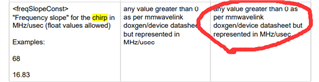 我想知道雷达参数的设置范围,但是在SDK的mmwave_sdk_user_guide中很多地方显示any value as per mmwavelink doxgen/device datasheet but represented in XXX。