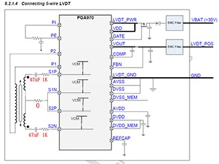 疑问1:这种5线制的LVDT用哪种电路连接方式可以波形不失真,具体电路参数怎么样?同时S1P,S1N/S2P,S2N信号要求是怎么样的?