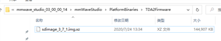在使用 路径”mmwave_studio_03_00_00_14\mmWaveStudio\PlatformBinaries\TDA2Firmware“下的文件”sdimage_3_7_1.img.xz“