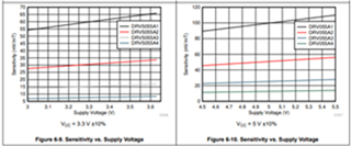 DRV5055 等线性霍尔效应传感器通常称为比例式传感器。 这些器件提供了一项有用的功能,即器件的输出会与 Vcc 成比例地缩放。 对于监控传感器输出电压的控制系统,该系统必须根据已知的基准电压成比例缩放。