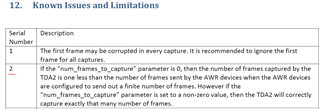 我在使用的是AWR2243 Cascade Radar EVM和TDA2xx,使用mmWaveStudio 3.14配置波形采集数据,我遇到下面问题:1.采集的ADC数据存在丢帧问题,配置采集100帧数据,但是实际只采集到83帧数据,请问该如何解决?2.使用mmWaveStudio,配置每次下载AWR2243固件需要很长时间,可否直接下载进FLASH中,直接从FLASH启动,但是我尝试过先将固件下载进2243的Flash,然后利用mmwaveStudio配置为sop2,启动,但是无法成功,请问该如何解决?期待您的回复!
