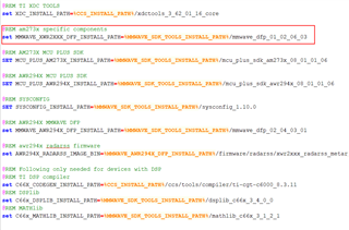 请问当前AM2732是否支持单片的AWR1243呢,我们有个AWR1243的射频板想结合AM2732做下调试,我修改了编译环境里面对应的AWR2243的DFP包为支持1243的,如下: