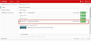 我尝试了按照上图的方式烧写sbl跟backupImage程序(0x180000地址)到flash中去,sbl的执行逻辑是会等待一段时间读取串口的数据看有没有需要升级更新application程序的判断,此时我是没有去下发升级更新指令,然后sbl就会执行后续的load application程序(0x80000地址),因为我用uniflash烧写代码的时候没有在0x80000这个上面烧写application程序,所有sbl会判断load application程序失败,最后就会去load backupImage(0x180000地址)的程序。这里我烧写了一个backupImage的程序,可以正常load并且成功引导执行起来。