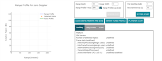 然后,我把chirps改小了,帧间隔时间拉长了,如下,参数配置能够正常下载,plots下面也有图显示,虽然没有明显的目标信息,但能正常运行,是不是上面的参数配置数据量太大、帧间隔时间太短导致数据溢出或者处理不过来引起的呢,请问此处有什么限制吗,后续我们修改参数怎么去合理的做配置呢?
