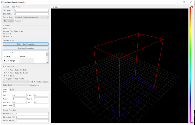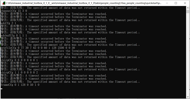 我用的C:\ti\mmwave_industrial_toolbox_4_1_0\labs\people_counting\16xx_people_counting\gui\mmw_pplcount_demo_default.cfg文件和C:\ti\mmwave_industrial_toolbox_4_1_0\labs\people_counting\16xx_people_counting\quickstart\xwr16xx_pcount_lab.bin的默认文件,没有修改过。见附件。