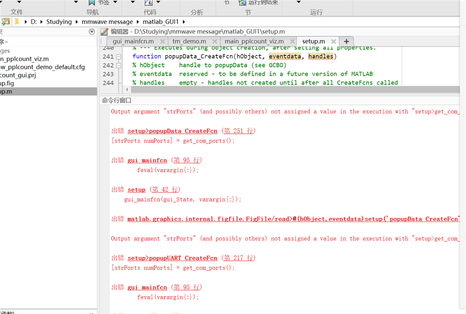 运行官网的检测人员的代码,出现很多错误,检测串口信息就开始报错,请问应该怎么解决?