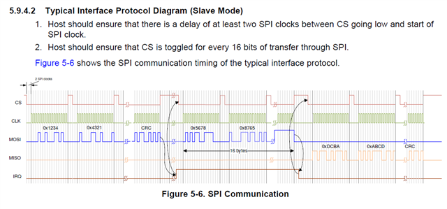 但是没有找到IRQ的时序描述,有没有哪个文档中有关与SPI通讯这块的描述,可以告诉我们如何使用IRQ信息,比如IRQ什么时候高,什么时候低,同另外四个信号的关系?