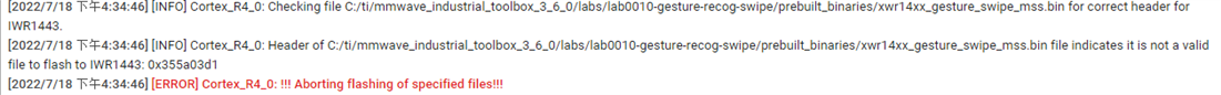 IWR1443BOOST: uniflash向开发板下载文件出错误