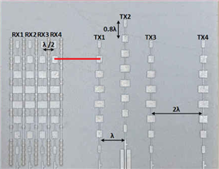 这个最左到最右是接收天线阵列最左到最右?如果是的话,24mm(2.4cm)太大了些,77G的四根接收天线也就6mm