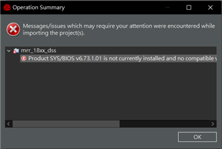 Product SYS/BIOS v6.73.1.01 is not currently installed and no compatible version is available. Please install this product or a compatible version.