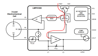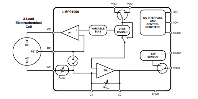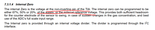 您好 请问internal zero 选择50%的意思是 VDD的一半进入TIA的同相端 另一半进入A1的同相端吗 还有我没有明白图二中variable bias 给we和re提供偏置电压是什么意思 如果bias设置为0就代表we和re没有偏置电压吗 他们的电压就相等吗