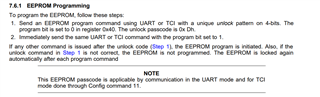 已得到回复,他认为您的问题是没有对EEPROM进行批量写入。如果通过UART通信,则可以使用command 12来完成此操作。