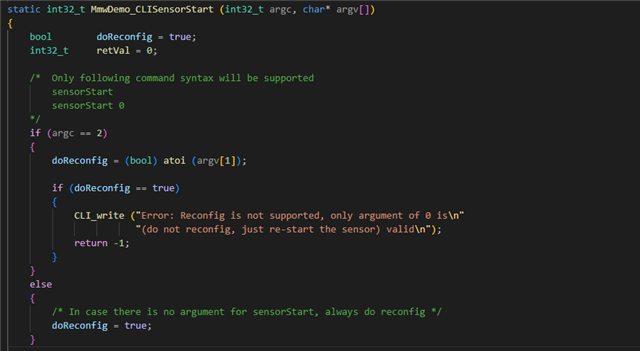 Error: You have provided partial configuration between stop and this command and partial configuration cannot be undone.Issue the full configuration and do "sensorStart"